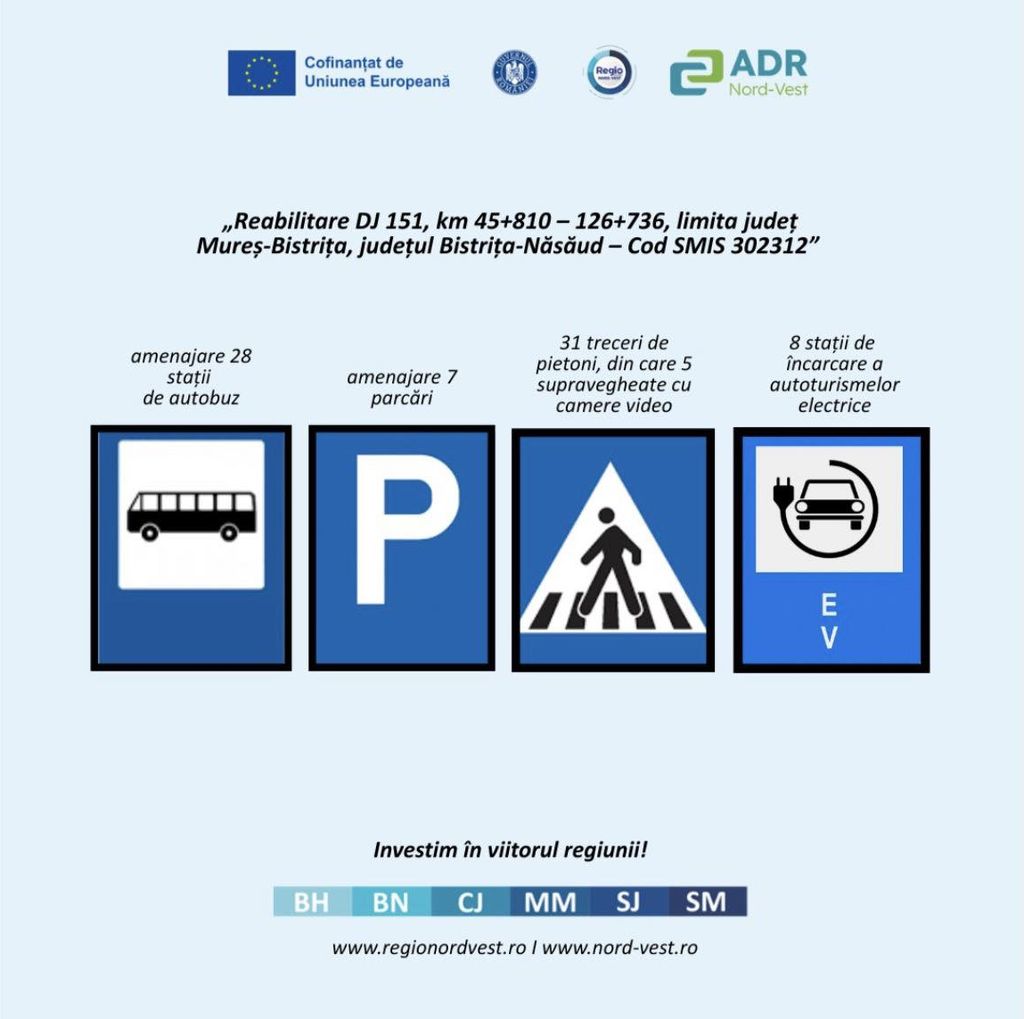 La Consiliul Județean Bistrița-Năsăud a avut loc, în prezența conducerii ADR Nord-Vest, conferința de lansare a proiectului ”Reabilitare DJ 151, km 45+810 – 126+736, limită județ Mureș – Bistrița”, în valoare totală estimată de 660.181.998 lei.