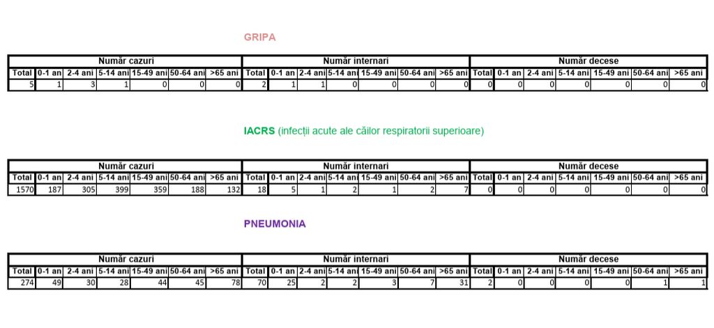 Pneumonia, în schimb, continuă să afecteze o categorie mai largă de persoane – 274 – cu forme mai grave la cei peste 65 de ani. Două persoane au decedat în săptămâna dinaintea Paștilor, una de peste 50 de ani, iar alta de peste 65.