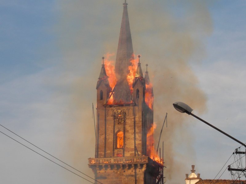 (FOTO-VIDEO) La împlinirea a 11 ani de când Biserica Evanghelică din Bistrița a fost cuprinsă de flăcări, în fața celui mai important monument istoric al orașului, care acum se află în proces de restaurare, a avut loc o rugăciune ecumenică de comemorare a tristului eveniment, la care au participat preoți aparținând mai multor confesiuni.