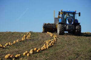 Două utilaje moderne, achiziționate cu bani europeni, adună semințe de dovleac direct din câmp, un real sprijin pentru Cooperativa Agricolă Transylvanian Pure...