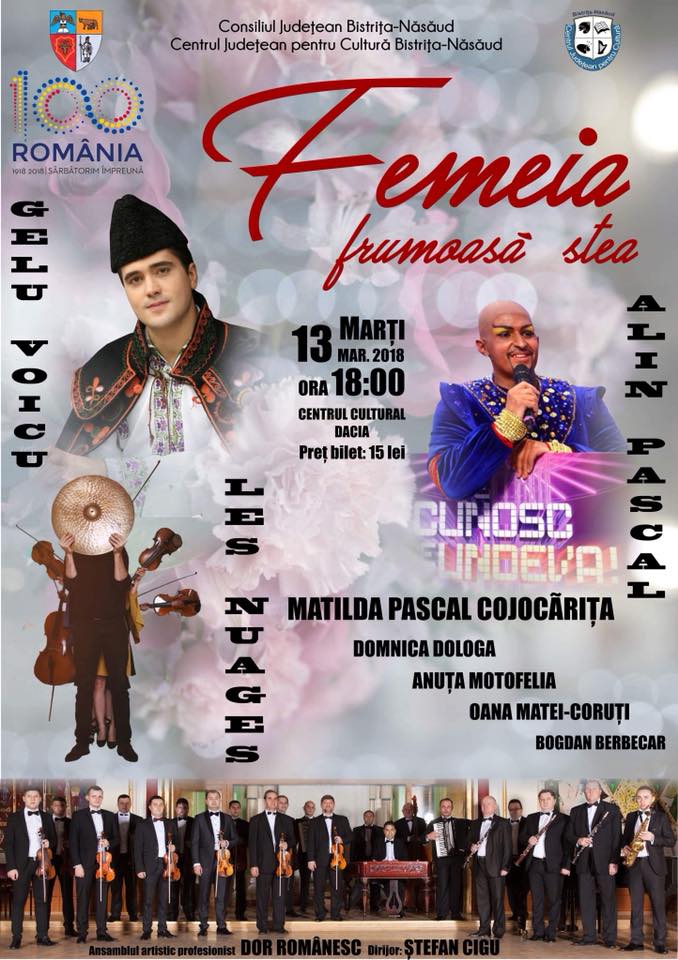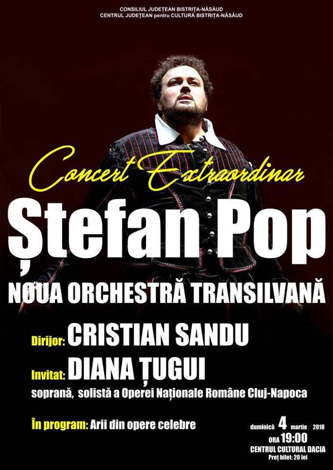 Centrul Cultural Dacia din Bistrița va găzdui în luna martie o serie de evenimente: concert extraordinar al tenorului Ștefan Pop, cetățean de onoare al Bistriței, spectacolul ”Femeia frumoasă stea”, show de comedie cu Doru Octavian Dumitru.