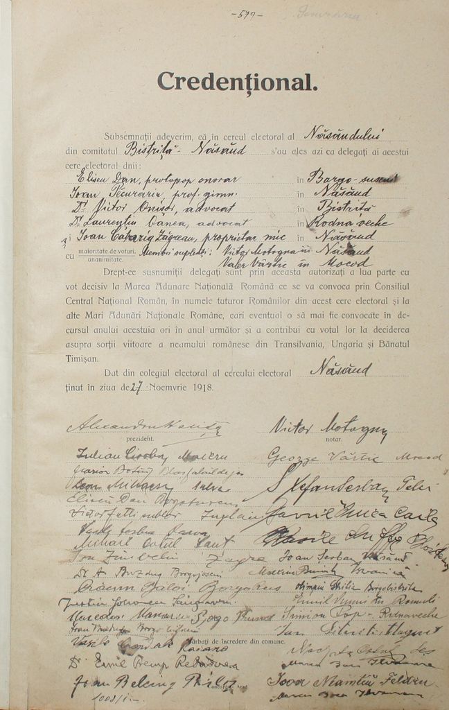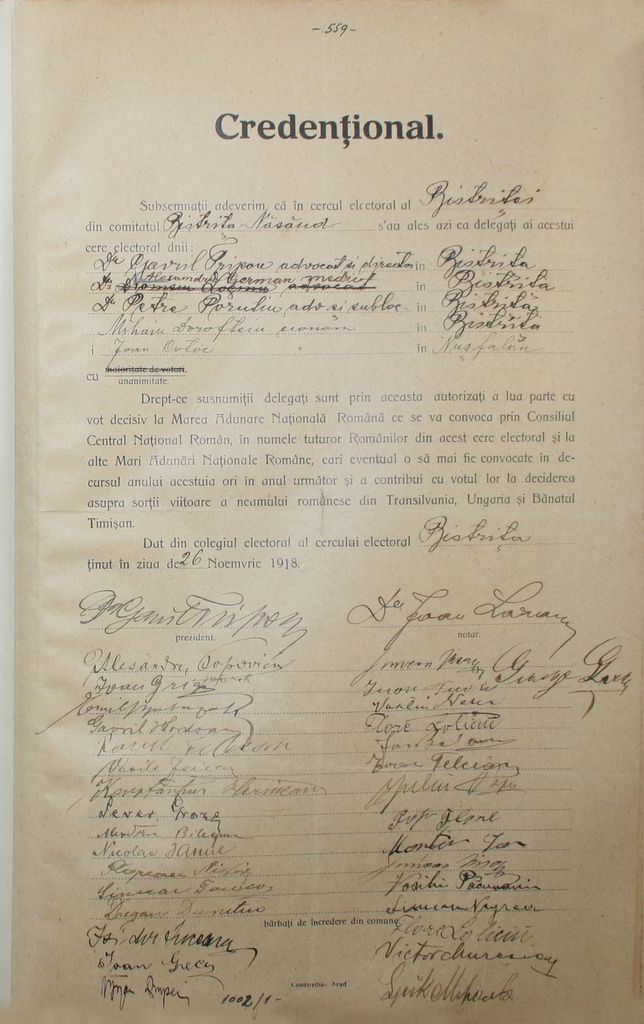Prima expoziţie, dedicată Centenarului şi intitulată ”Mărturii ale Marii Uniri din 1918” este realizată în parteneriat cu Direcţia Judeţeană Bistriţa-Năsăud a Arhivelor Naţionale şi Primăria Bistriţa. Expoziţia, ce se va deschide în Piaţa Centrală vineri 24 august, la ora 10.00, cuprinde mai multe panouri care prezintă atât aspecte importante ale realizării Marii Uniri din 1918 cât şi detalii referitoare la participanţii locali la Marea Adunare Naţională de la Alba Iulia, în calitate de reprezentanţi ai Bistriţei-Năsăud: „Şi la Bălgradul ardelenesc, la Alba Iulia s-au strâns mii de cetăţeni din toate cele aproape treizeci de comitate, cu preoţii, cu învăţătorii, cu căpeteniile lor obişnuite, cu soldaţii care dezbrăcaseră uniforma unui rege ce nu mai este… De aceea e nezguduită fapta Unirii pentru că toţi au voit-o şi mai ales aceia care, din neam în neam au muncit şi au suferit pentru că erau români şi pentru a rămâne români… Un cuvânt de sfârşit: să fim vrednici de ce avem!” (Nicolae Iorga).