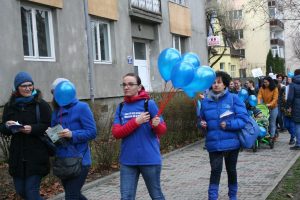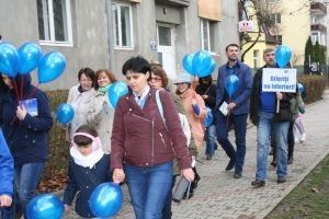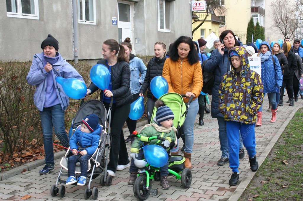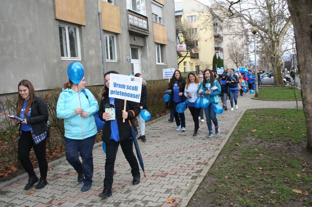 Zeci de părinţi şi copii îmbrăcaţi în albastru au străbătut oraşul fără să scandeze ceva, dar afişând parcarte pe care au scris printre altele: “Vrem servicii sociale şi psihologice gratuite!”, ”Crezi că ești stresat? Încearcă să ai autism!” sau “Vrem acceptare, nu discriminare”.
