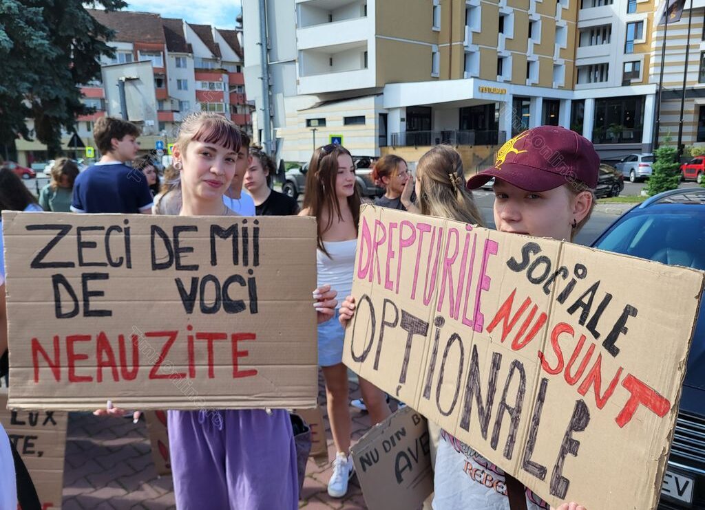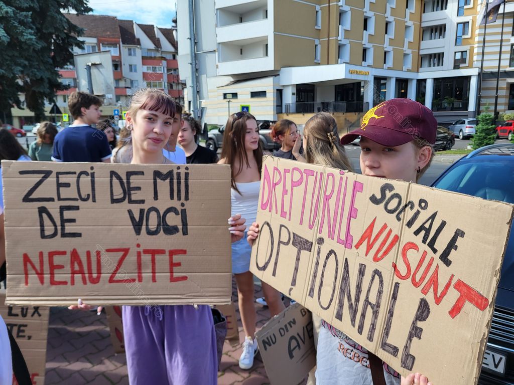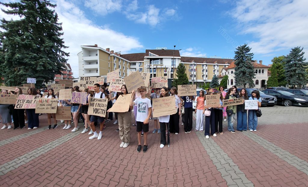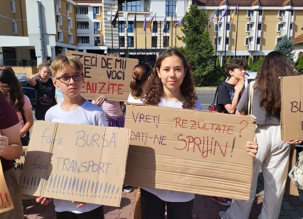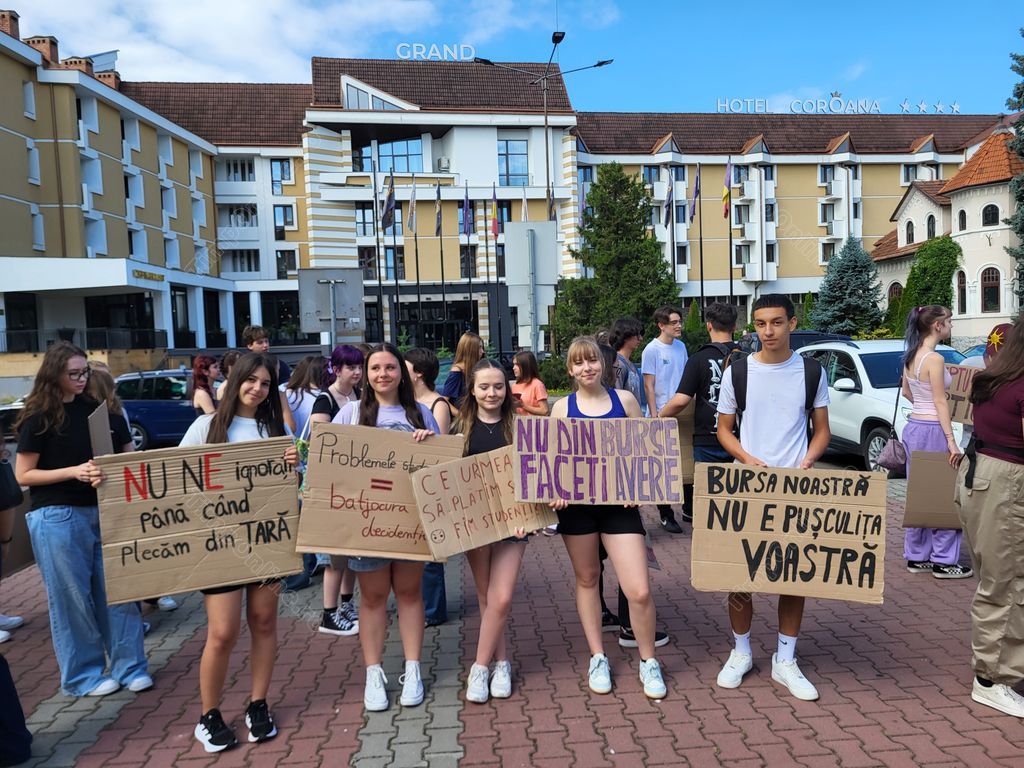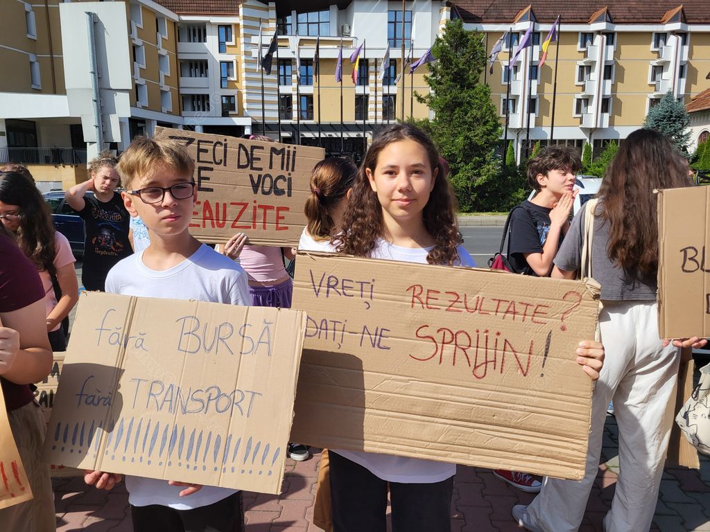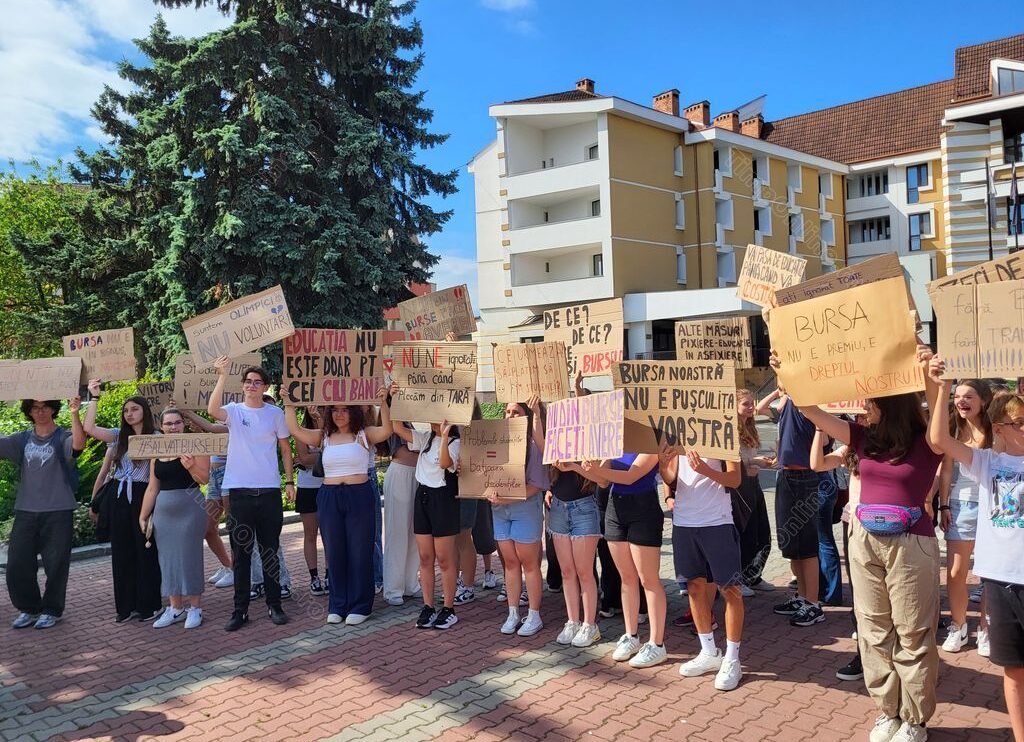 Peste 80 de elevi din Bistrița-Năsăud au ieșit astăzi în stradă, în fața Palatului Administrativ, pentru a protesta împotriva modificărilor aduse sistemului de burse. Acțiunea a fost organizată de Consiliul Județean al Elevilor și a fost autorizată.