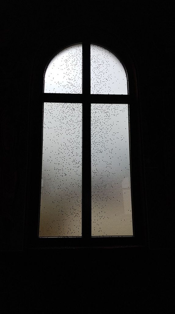 • S-a răcit vremea si căuta și ele scăpare.Considera ca biserica e stupul lor.E drept că sunt cam multe,ar putea să aleagă si beciurile de pe la casele oamenilor.In câteva zile dispar si nu le mai vezi.La fel si liliecii isi fac adăpost în turnurile si in podurile bisericilor.E o comuniune între Dumnezeu,om si natura.