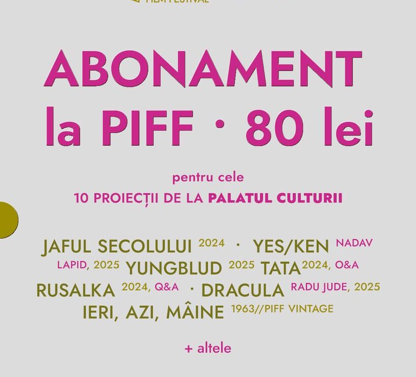 Preţul ABONAMENTULUI este de 80 lei şi poate fi cumpărat de la Casa de Bilete a Palatului Culturii (număr limitat) şi online de pe iabilet.ro. Precizăm că platforma iabilet.ro adaugă o mică taxă de vânzare online!