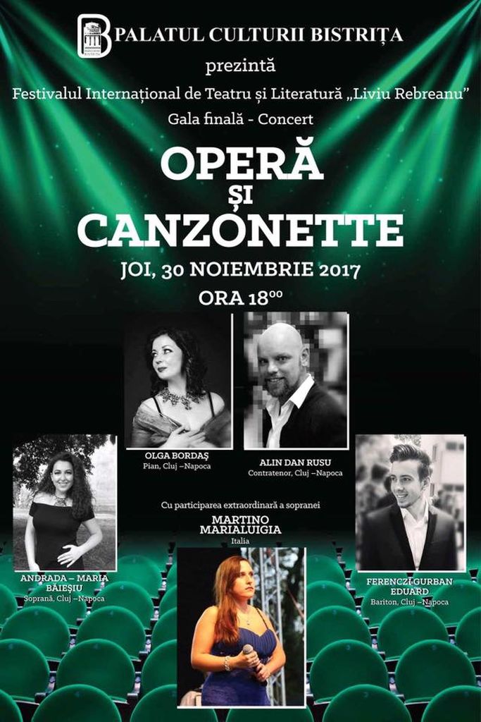 Vor urca pe scenă, într-un concert de operă și canzonette, soprana Andrada Maria Băieșiu (Cluj-Napoca), contratenorul Alin Dan Rusu (Cluj-Napoca), baritonul Ferenczi Gurban Eduard (Cluj-Napoca), pianista Olga Bordaș (Cluj-Napoca) și invitata specială – soprana Marialuigia Martino (Italia).