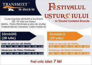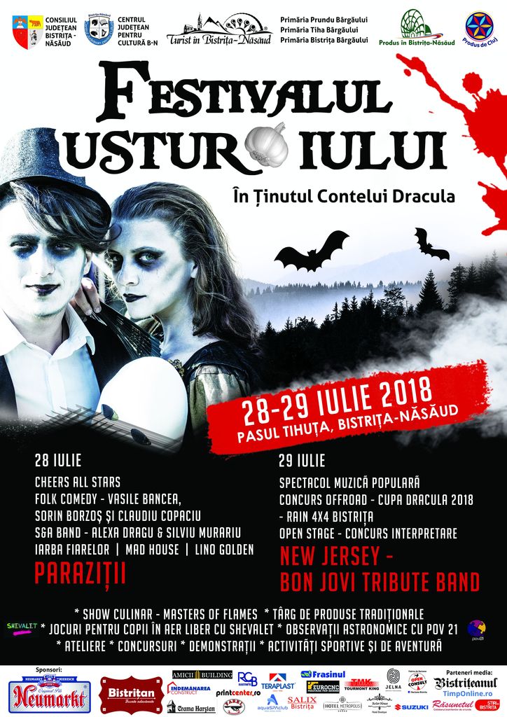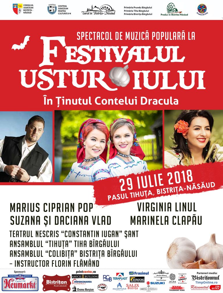 O nouă ediție a Festivalului Usturoiului în Ținutul Contelui Dracula – cel mai popular eveniment de promovare a potențialului turistic, a produselor și tradițiilor din județul Bistrița-Năsăud – va avea loc sâmbătă 28 și duminică 29 iulie, pe Pășunea Rusu din Piatra Fântânele, Pasul Tihuța.