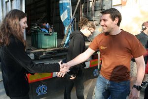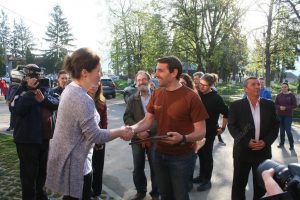 La ora 8.30 fix, la Sânmihaiu de Câmpie a ajuns şi Nicolae de România, nepotul Regelui Mihai I, care de zece ani e şi voluntar Tăşuleasa Social. L-a însoţit logodnica lui, Alina Binder. Cei doi au fost întâmpinaţi de primar, de reprezentanţii şcolii şi de câţiva membri ai Clubului Monarhiştilor Bistriţeni. Pregătiţi de munjcă, au pus osul la treabă şi au ajutat la încărcarea PET-urilor în camion.