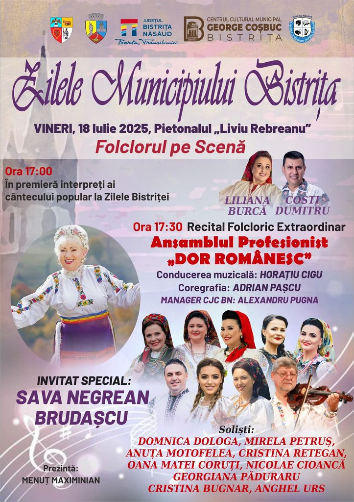 Ora 17.00 – În premieră interpreți ai cântecului popular la Zilele Bistriței: Liliana Burcă, Costi Dumitru