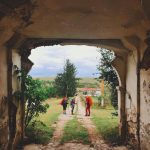 În ziua 8 am pornit cu o ușoară teamă de la Pensiunea Maria, teama că la finalul zilei vom ajunge la destinația finală, vom fi parcurs cei 133 de km și că undeva la limita județului, urma să dăm nas în nas cu un fel de void, un gol negru cu un cerculeț care se umple și golește progresiv și enervant în semn de “loading”. Peisajul era absolut superb, picioarele nu dureau nici măcar puțin, era de parcă cu o zi înainte am învățat să mergem și acum ne lăudam cu ceea ce știam. Drumuri pietruite, drumuri de pășune, prin lanuri de porumb, ne-am văzut ajunse în Monor. Am fost întâmpinate cu ciorchini de struguri. Am adăugat la statistica noastră faptul că pe măsură ce înaintam pe traseu, întrebările tăranilor își schimbau ordinea între ele, acum era “da unde mergeți?”, abia apoi curiozitatea “de unde veniți?”. Am părăsit din nou civilizația, din nou pe dealuri, cu turmele de oi, ciurde de vaci, câini prea leneși să se obosească să ne strice nouă planurile. Ultimii 5 km se anunțau pe GPS și așa a început numărătoarea inversă. Am mers în liniște, în grup compact, numărând ultimele borne, așa cum se numără secundele la revelion, dar cu pauze lungi între “5, 4, 3, 2…”. Intram în ultimul kilometru, părea că ne ajunge din urmă furtuna și ne întrebam în tăcere ce vom simți la final, singure. Kitty ne-a cerut voie din timp să o lăsăm să plângă. Nu a plâns Kitty pentru că la capătul traseului era deja ajunsă o ciurdă de văcuțe care mestecau leneșe, oprindu-se din această activitate doar pentru a ne oferi câteva momente de atenție prin niște priviri lungi și confuze, dar foarte blânde. Clinchete de zâne ascunse în tălăngi și era gata”.