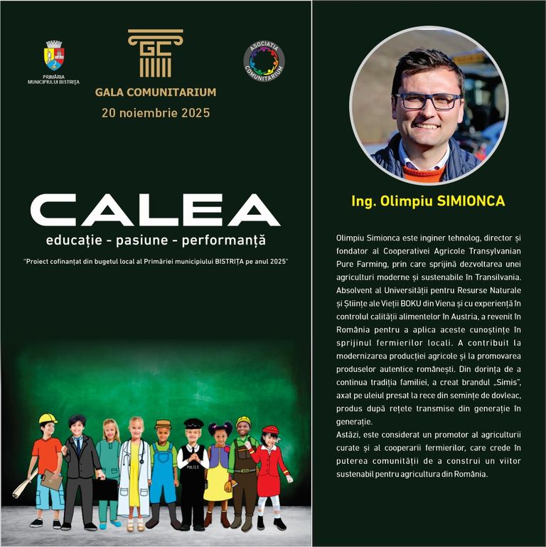 Gala Comunitarium 2025 îi aduce în fața publicului pe cei cinci speakeri invitați – profesioniști din domenii precum ingineria, agricultura, sportul de performanță, leadershipul spiritual și implicarea civică. Prin parcursul lor personal și profesional, acești invitați reprezintă modele autentice pentru tinerii din Bistrița, promovând valori precum perseverența, integritatea și responsabilitatea socială.