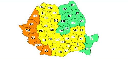 În după-amiaza zilei de sâmbătă (12 august), dar mai ales în noaptea de sâmbătă spre duminică (12/13 august) vremea va deveni instabilă în regiunile vestice, sud-vestice și în zonele montane aferente, unde vor fi averse torențiale, frecvente descărcări electrice, vijelii și căderi de grindină.