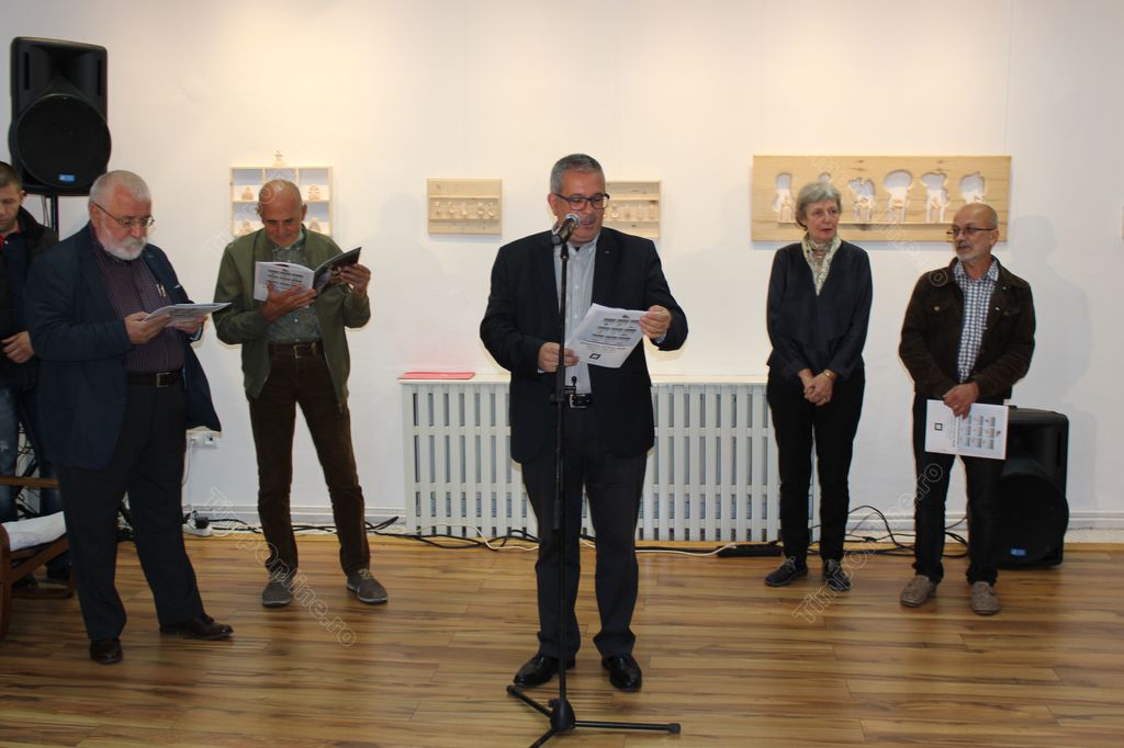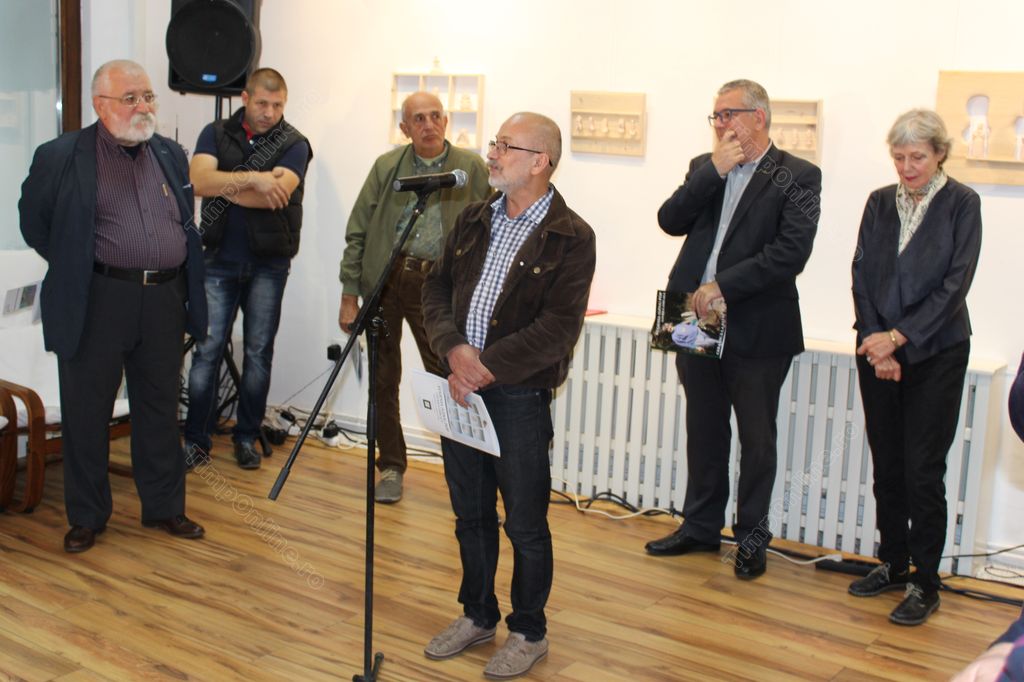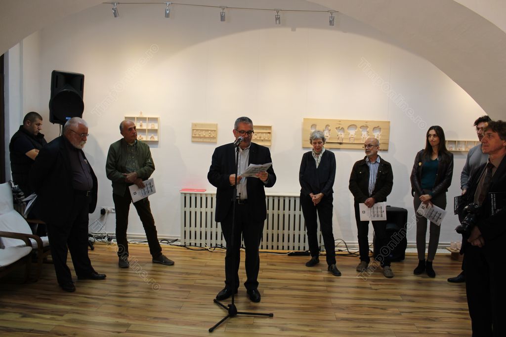 ”Expoziția pe care v-o propunem timp de o lună are menirea de a aduce în atenția publicului un artist contemporan care prin eforturile de cercetare a formelor a încercat să se așeze în descendența ilustră a arheologiilor imaginare, pe care istoricii civilizației neolitice ne-au adus-o în actualitate. Eugenia Pop a cercetat cu instrumentele și inteigența artistului contemporan formele predilecte ale lumii neolitice. Românii au norocul de a avea pe teritoriul țării excepționale exemple de civilizație neolitică, așa cum sunt cele de la Cucuteni. Eugenia Pop a studiat timp de decenii aceste forme și s-a jucat cu ele, aș putea spune, reușind să facă din imaginarul arheologic al omului neolitic un univers plastic personal. Toți artiștii importanți ai secolului XX au dus cercetările lor înspre aceste rădăcini imemoriale ale civilizației continentului nostru. Prin urmare, expoziția noastră este un excepțional gest de civilizație prin recursul la cultura formelor, așa cum acestea sunt înțelese de artistul contemporan. În această expoziție este vorba și de Brâncuși, și de artistul care se caută în rădăcinile civilizației europene. Jurnalul Eugeniei Pop dezvăluie căutările pe care orice artist trebuie să le aibă, este un discurs deopotrivă pe verticală și pe orizontală. Pe verticală pentru că ne gândim la trecutul imemorial al acestor forme pe care vă invităm să le descoperiți și pe orizontală pentru că unii colegi ai artistei sunt prezenți aici. Evidențiem gestul de o excepțională candoare a artistului Gavrilă Zmicală, ucenic și coleg al Eugeniei Pop, care înfăptuiește aceste lucrări. De aceea, expoziția se numește ”Ceramică la patru mâini”. Totodată, a gândit expoziția și este curatorul ei”, a spus amfitrionul evenimentului, Marin Ecedi, proprietarul Galeriei Concentric.