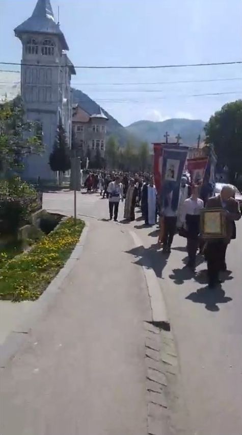 (FOTO-VIDEO) Luni 23 aprilie, de Sf. Mare Mucenic Gheorghe, la Sîngeorz-Băi a avut loc ”Sărbătoarea sîngeorzenilor”, care a început cu Acatistul Sf. Gheorghe la Biserica ”Sf. Nicolae”, Sfânta Liturghie oficiată de un sobor de preoți în frunte cu potopopul Năsăudului, Ioan Dâmbu, și o procesiune religioasă de la biserică până în parcul stațiunii.