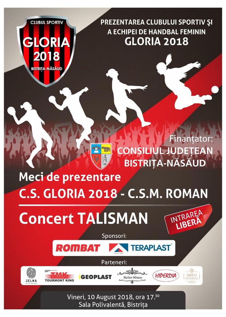 Clubul Sportiv Gloria 2018 Bistrița-Năsăud organizează la Sala Polivalentă din Bistrița un eveniment de prezentare a echipei de handbal feminin pentru noul sezon al Ligii Naționale, vineri 10 august începând cu ora 17.30: ”Vino să ne cunoști!”.