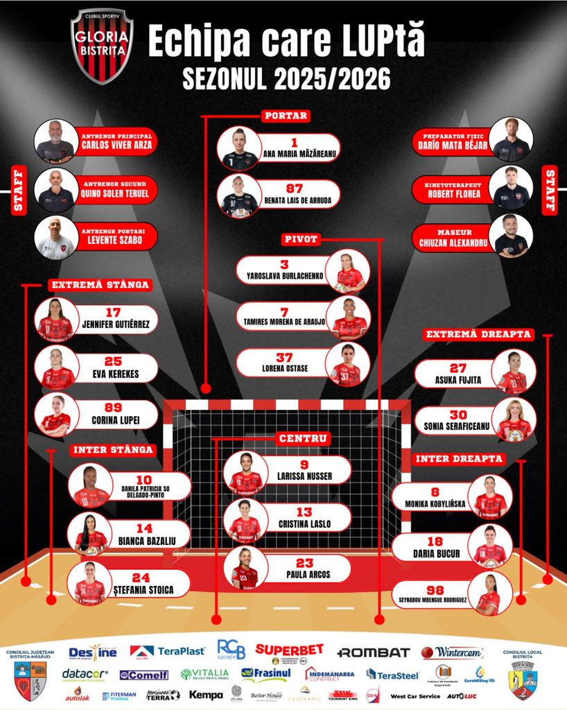 Gloria Bistrița a anunțat lotul pentru sezonul următor de handbal feminin. În cel recent încheiat, echipa a obținut medaliile de bronz în Liga Florilor și pe cele de argint în Cupa României. Totodată, a evoluat în premieră în Liga Campionilor, competiție în care va evolua și în ediția următoare.