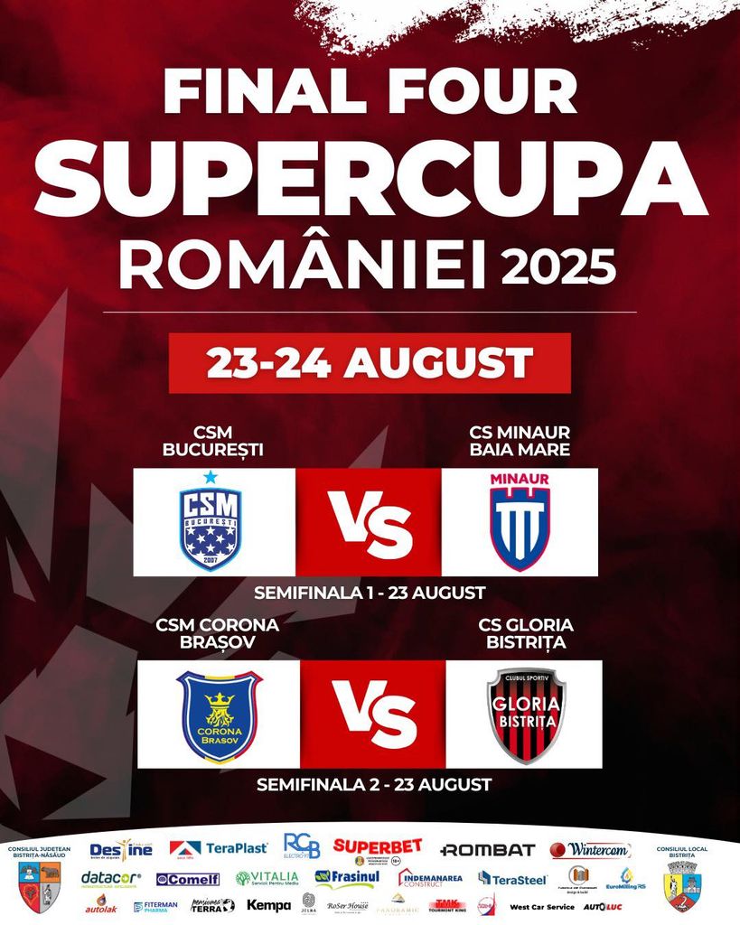 În 23-24 august, Gloria va juca în Final Four-ul Supercupei României. Echipa bistrițeană o va întâlni în semifinale pe Corona Brașov în 23 august. Finalele sunt programate a doua zi. Gazda turneului nu a fost încă stabilită.