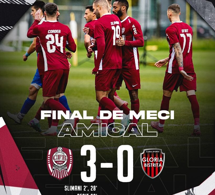 Profitând de pauza competițională prilejuită de meciurile României, Gloria Bistrița (locul 19 în Liga 2) a disputat un meci de pregătire cu CFR Cluj (locul 12 în Superliga).