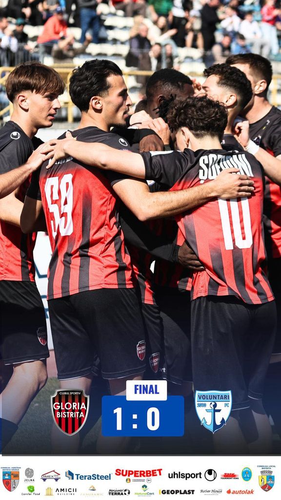 Fotbal: Gloria Bistrița a învins-o acasă pe FC Voluntari, deja calificată în play-off, în ultimul meci al sezonului regular din Liga 2, și intră în play-out de pe locul 14, urmând să evolueze în Grupa A.