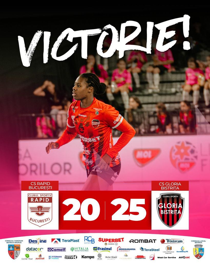 Gloria Bistrița a câștigat în deplasare în fața echipei Rapid București, într-un meci contând pentru etapa a 6-a a Ligii Florilor la handbal feminin.