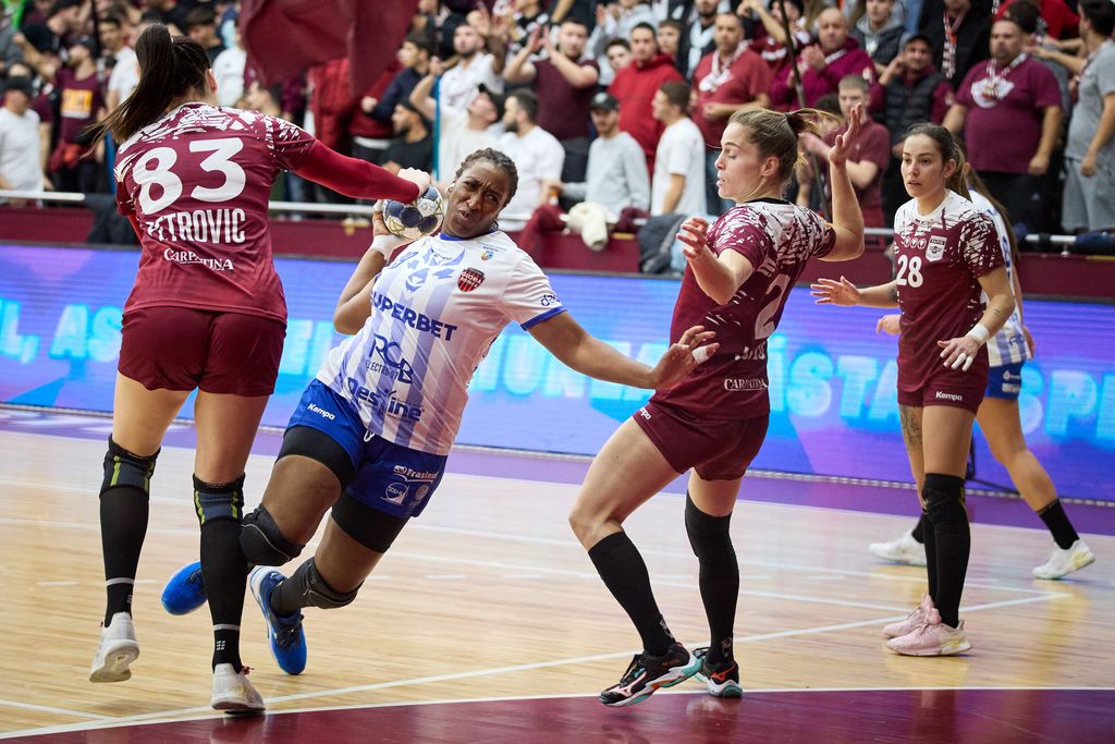 • Gloria a condus tot meciul , desi in doua randuri Rapidul a egalat (de la 3:7 s-a ajuns la 7:7) sau s-a apropiat la 1 sau doua goluri , recuperand 2 sau 3 goluri la rand. Sunt convins ca echipa bistriteana putea mai mult dar cred ca si-a conservat fortele pentru urmatoarele doua meciuri din deplasare , cel cu Buducnost la Podgorica si cel cu echipa selectionerului echipei nationale , la Craiova. Felicitari echipei castigatoare si stafului tehnic! S-au obtinut doua puncte extrem de pretioase , pe terenul unei echipe orgolioase si cu pretentii , unde este foarte greu sa castigi. Renata de Arruda ,asa cum ne-a obisnuit in ultima vreme (de fapt , de catva ani!) a fost una dintre eroinele Gloriei alaturi de prolificele Delgado , Seraficeanu si Nusser. Totusi cred ca Seraficeanu nu a marcat 9 goluri , eu am retinut doar 6. Daca facem adunarea golurilor marcate de Gloria Bistrita : 9(Delgado)+ 9(Seraficeanu)+4(Nusser)+2(Ostase+2(Arcos)+1(Gassama)+1(Stoica)+1(Kerekes)=29! iar 29>25 !(nu ca ar avea asa mare importanta…) Si poate Nusser sau Arcos au marcat cu un gol mai putin. Eroina Rapidului a fost , fara nicio indoiala , Denisa Sandru (fosta Dedu) care prin prestatia de azi dar si prin cea de la Brasov a aratat ca este cea mai buna dintre portarii de nationalitate romana , peste Serban , Curment sau Dumanska. Cu ea in echipa nationala ar creste mult sansele Romaniei la calificarea din grupa de la CM (cu Japonia , Croatia si Danemarca). Poate cineva o lamureste sa se alature. Desi nu-mi pare bine s-o spun , astazi Monika Kobylinska nu m-a convins. Poate alaturi de altele care (nici ele) nu au “rupt gura Targului” in meciul de azi , va juca mai bine in urmatoarele doua meciuri. Hai Gloria!