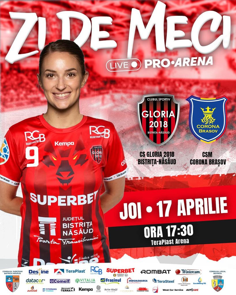 Gloria 2018 Bistrița-Năsăud, locul 6 în campionat, o întâlnește pe teren propriu pe ocupanta locului secund, Corona Brașov, în etapa a 22-a din Liga Florilor.