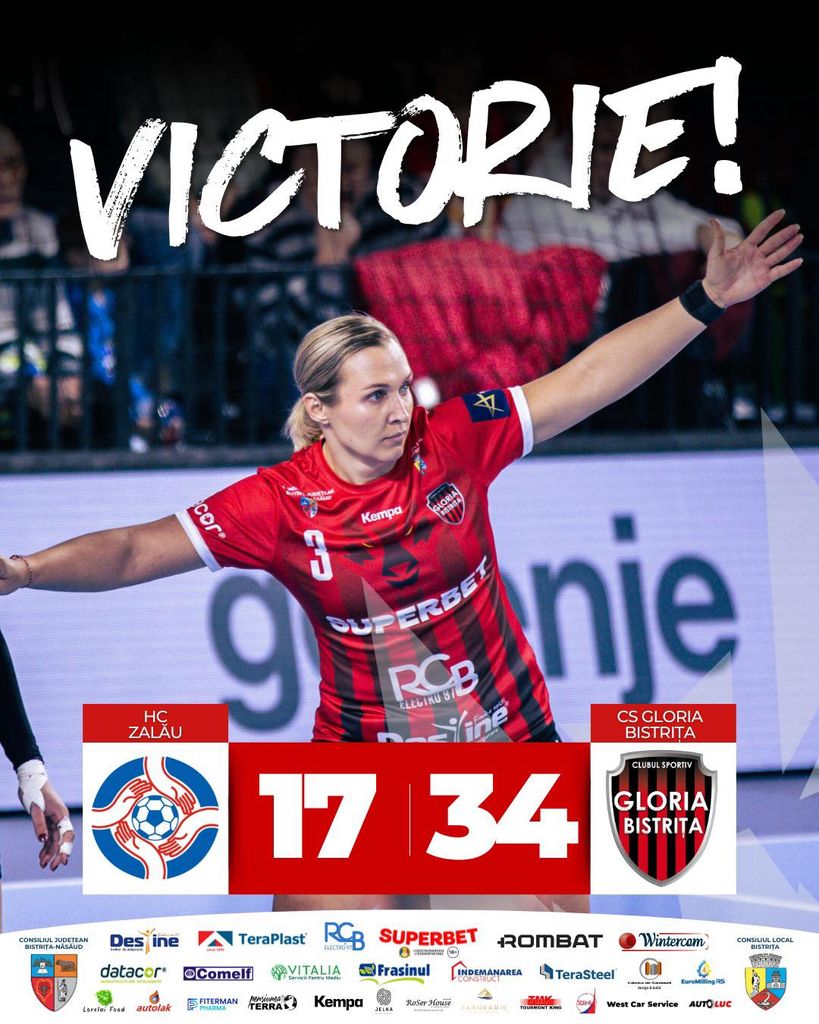 În etapa cu nr. 12 din Liga Florilor, prima a returului și a noului an, echipa de handbal feminin Gloria Bistrița (locul 2) a învins-o în deplasare pe HC Zalău (penultima clasată) la 17 goluri diferență.