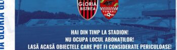 Gloria Bistrița (locul 17) evoluează pe teren propriu în etapa a 4-a din Liga 2 la fotbal împotriva echipei CS Tunari (locul 19). Partida se dispută sâmbătă 23 august, de la ora 11.00, pe Stadionul ”Jean Pădureanu”. Clubul Gloria anunță că biletele pentru meciul cu CS Tunari, precum și abonamentele pentru întreg sezonul, se pot … Continuă lectura Gloria joacă sâmbătă acasă. Bilete online, la club și la stadion