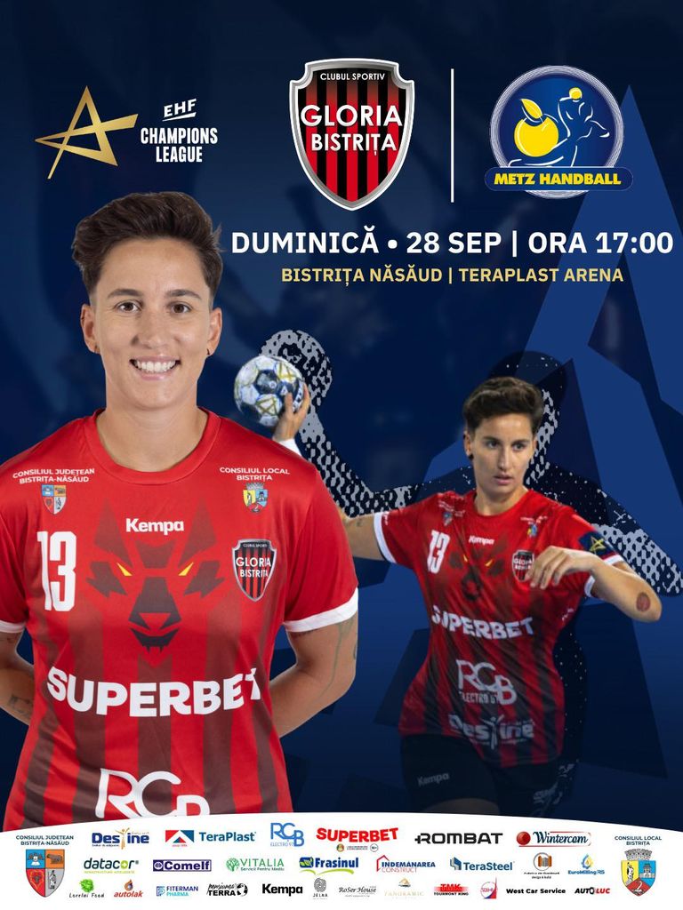 Gloria Bistrița joacă pe teren propriu cu Metz Handball (Franța) în runda a 3-a din Grupa A a Ligii Campionilor la handbal feminin. Cele două echipe au obținut până acum doar victorii.
