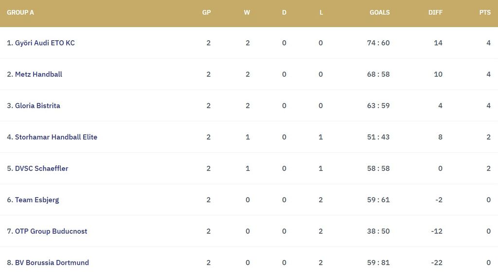 Celelalte jocuri din etapa cu nr. 3 a Grupei A: Podgorica – Gyor (sâmbătă ora 19.00), Dortmund – Debrecen (duminică ora 15.00), Esbjerg – Storhamar (duminică ora 17.00).