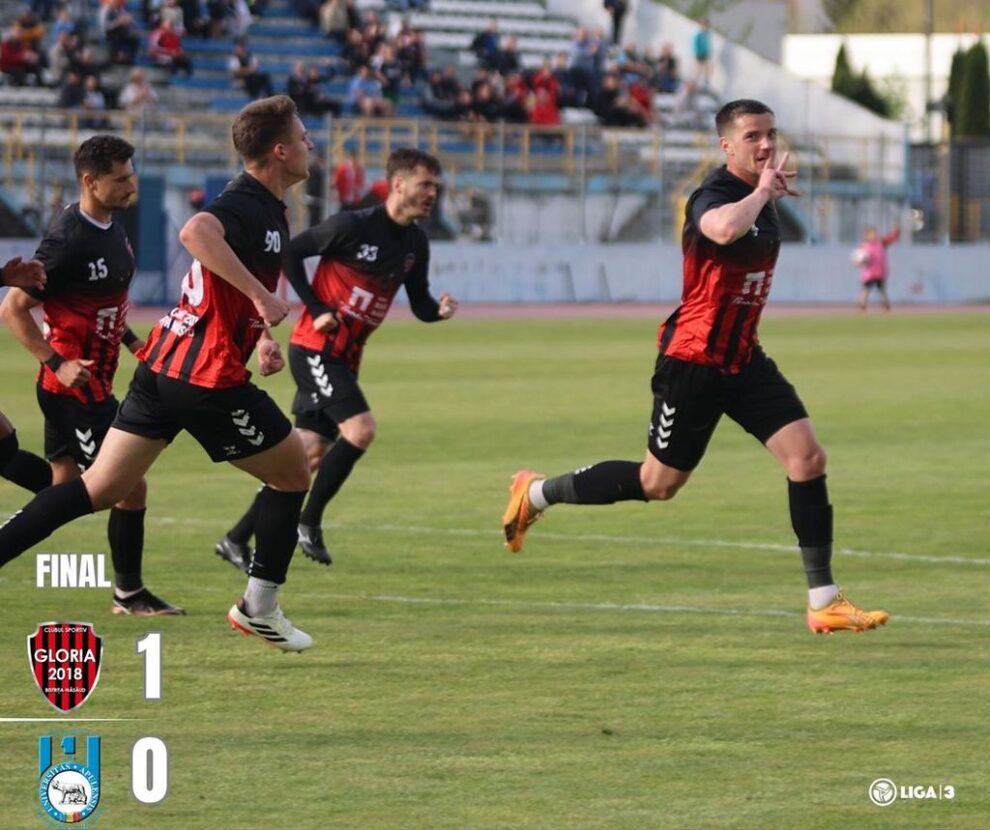 Fotbal: Gloria 2018 Bistrița-Năsăud, liderul play-off-ului în Seria 7 a Ligii 3, a înregistrat a patra victorie consecutivă și este calificată matematic pentru primul baraj de promovare în Liga 2.