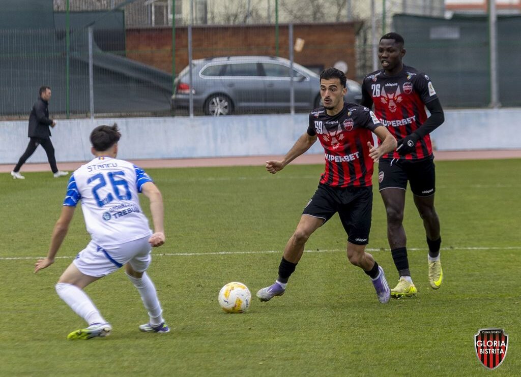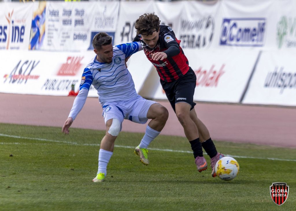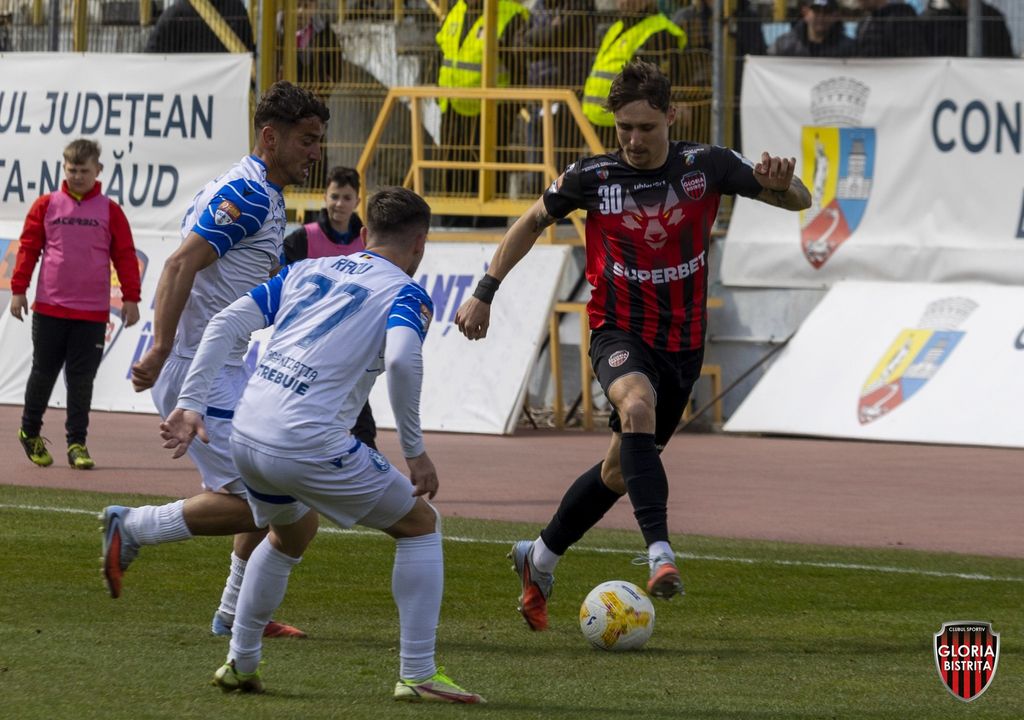 Pe Stadionul ”Jean Pădureanu”, Gloria a cedat cu 1-2, după ce a condus la pauză cu 1-0 prin golul înscris în minutul 34 de croatul Branimir Cavar. CSM Slatina a întors pe final soarta partidei: Ionuț Năstăsie a punctat în minutul 86, iar Siafa Etoha a marcat golul victoriei în prelungirile jocului, în minutul 90+2. Echipa bistrițeană, care era neînvinsă de șase runde, dintre care patru anul acesta, a făcut rocada în clasament cu adversara sa.