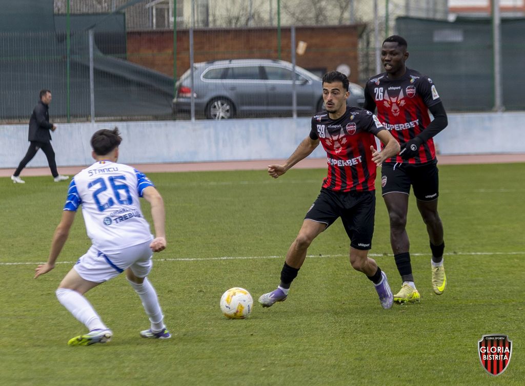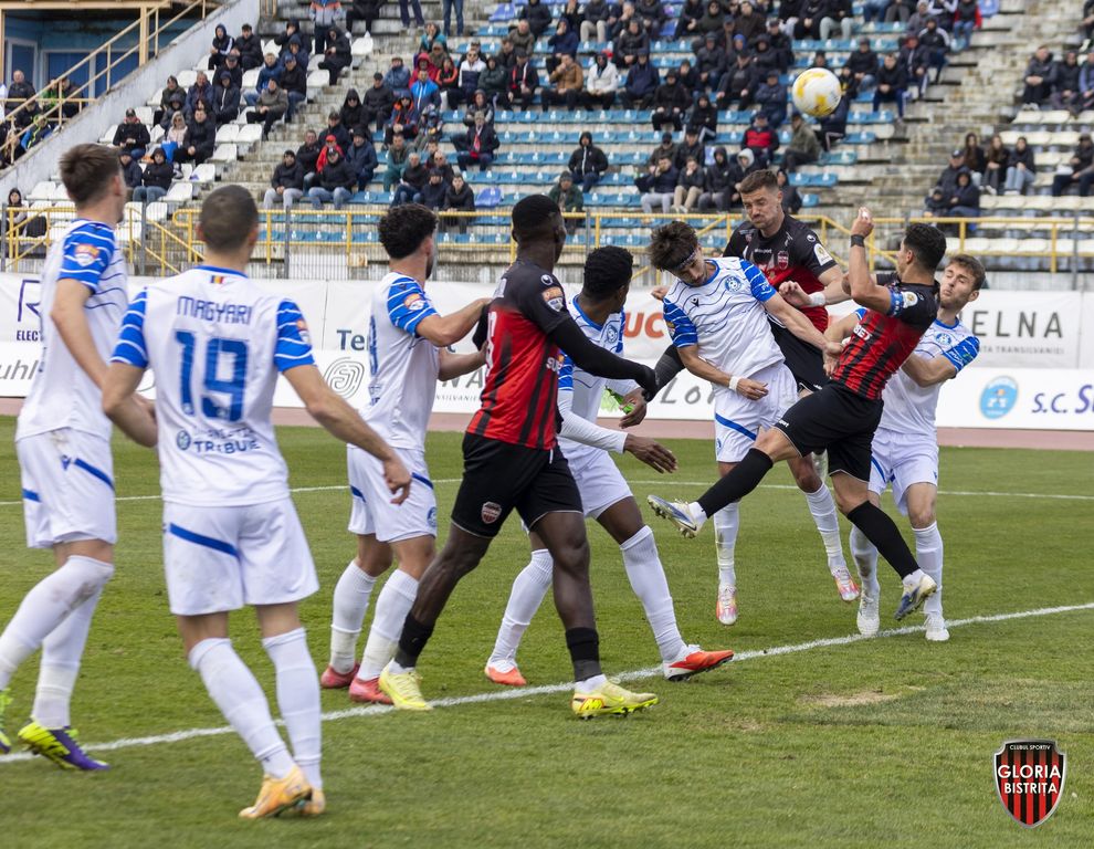 Pe Stadionul ”Jean Pădureanu”, Gloria a cedat cu 1-2, după ce a condus la pauză cu 1-0 prin golul înscris în minutul 34 de croatul Branimir Cavar. CSM Slatina a întors pe final soarta partidei: Ionuț Năstăsie a punctat în minutul 86, iar Siafa Etoha a marcat golul victoriei în prelungirile jocului, în minutul 90+2. Echipa bistrițeană, care era neînvinsă de șase runde, dintre care patru anul acesta, a făcut rocada în clasament cu adversara sa.