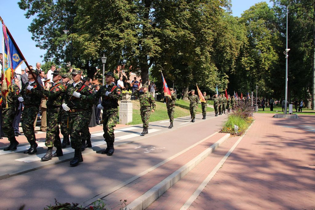 Ceremonia, care s-a încheiat cu defilarea gărzii de onoare în Parcul Municipal, a cuprins și un Te Deum oficiat de arhim. Dumitru Cobzaru.