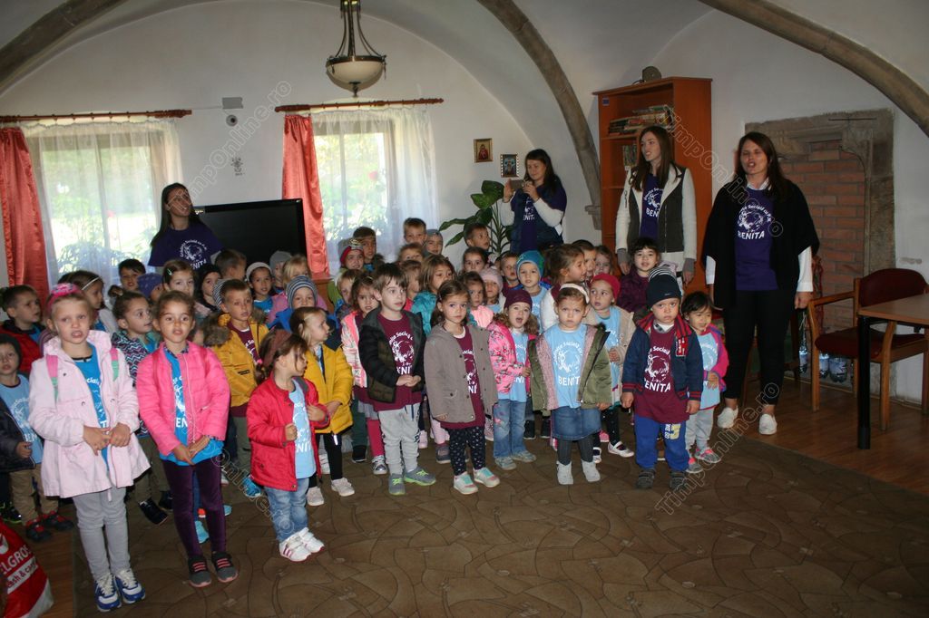 Încă de la intrare au fost întâmpinaţi de directoarea Carmen Muscar care le-a mulţumit pentru vizită. În faţa bătrânilor care au coborât din camere să-i întâlnească, cei mici au cântat La mulţi ani cu sănătate.
