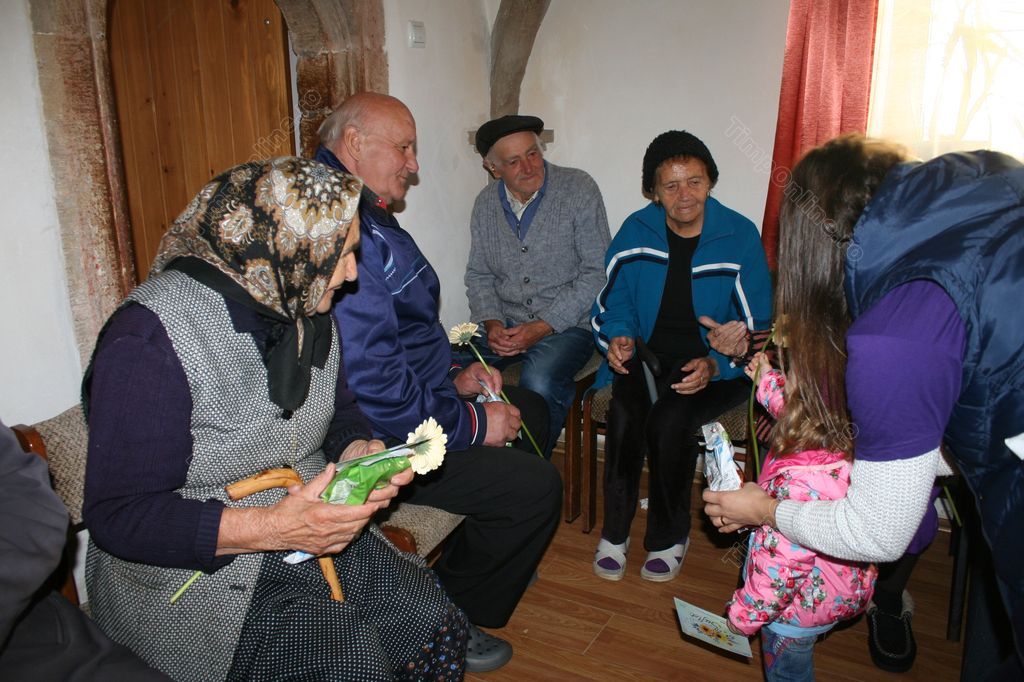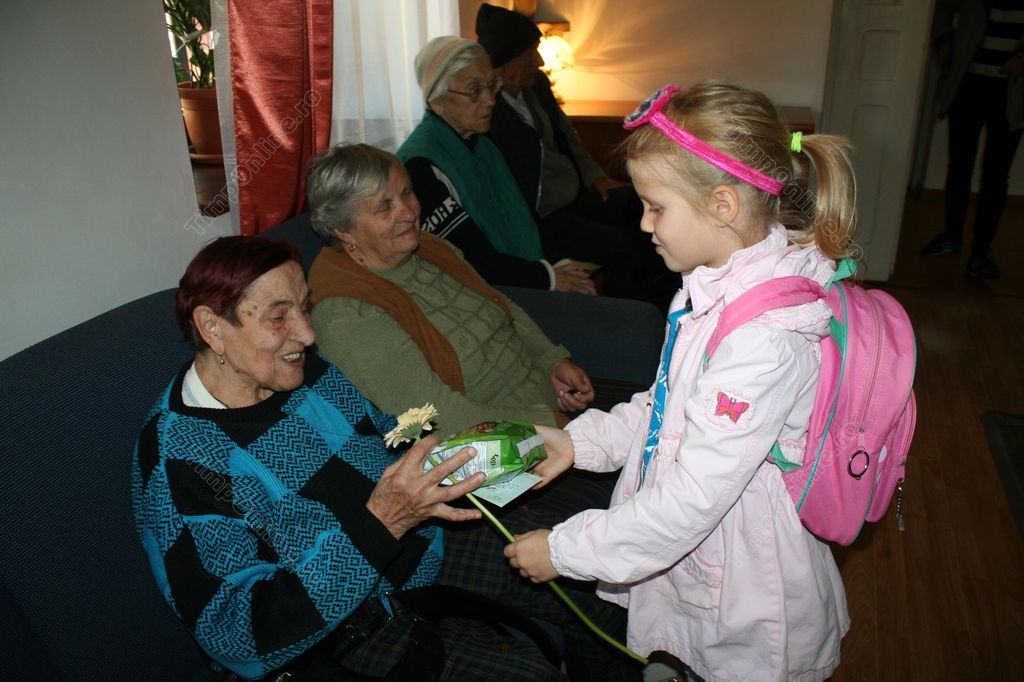 Cu toate că au doar câţiva anişori, copiii au înţeles de la educatoare că trebuie să îi trateze cu respect pe oamenii în vârstă care le-ar putea fi bunici. Fiecare şi-a luat în serios misiunea de a face o urare câte unui bunic şi de a-i dărui o floare, o felicitare şi ceva dulce.