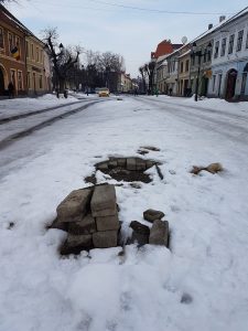 “Gropile şi pavajul rânjesc la trecători. Alo, primăria, e cineva acasă?”