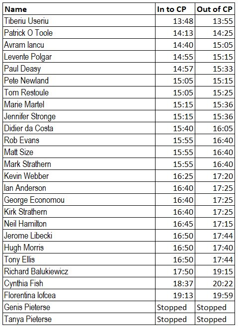 Din păcate, s-a întâmplat exact ce intuiam: fiind temperaturi decente, au gonit majoritatea mult peste nivelul normal, şi s-au trezit noaptea lipsiţi de energie. Iar prima noapte este fix prin Hurricane Valley, cea mai nasoală zonă din tot concursul din punct de vedere meteo.