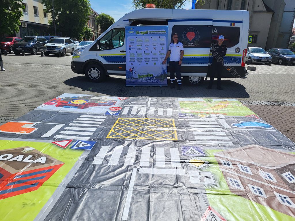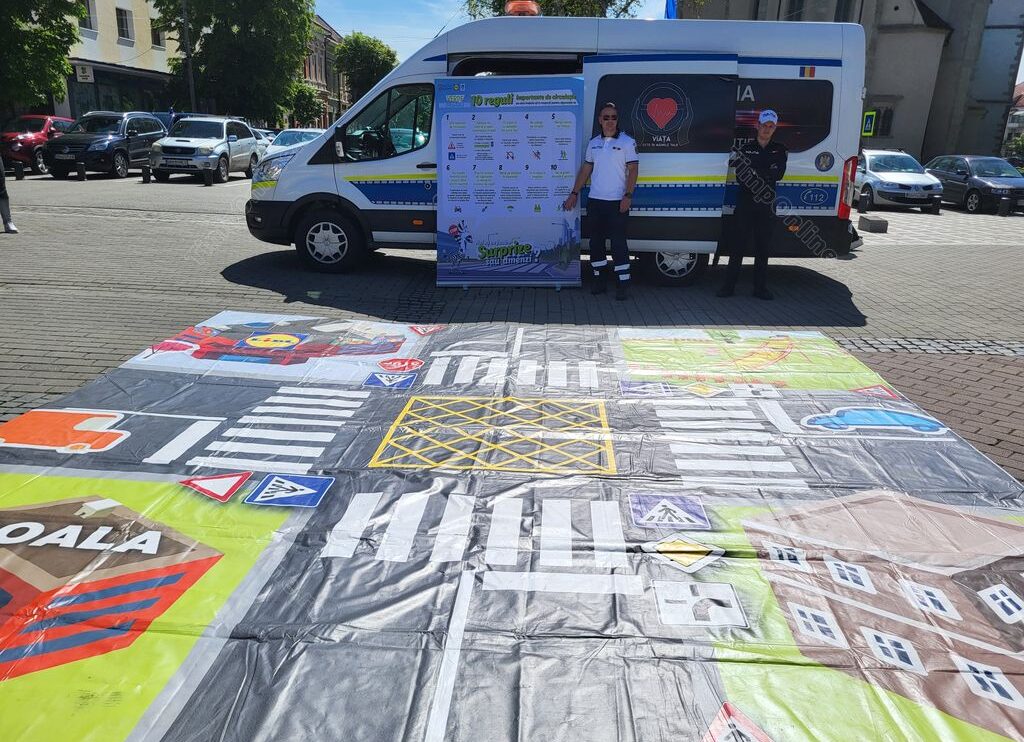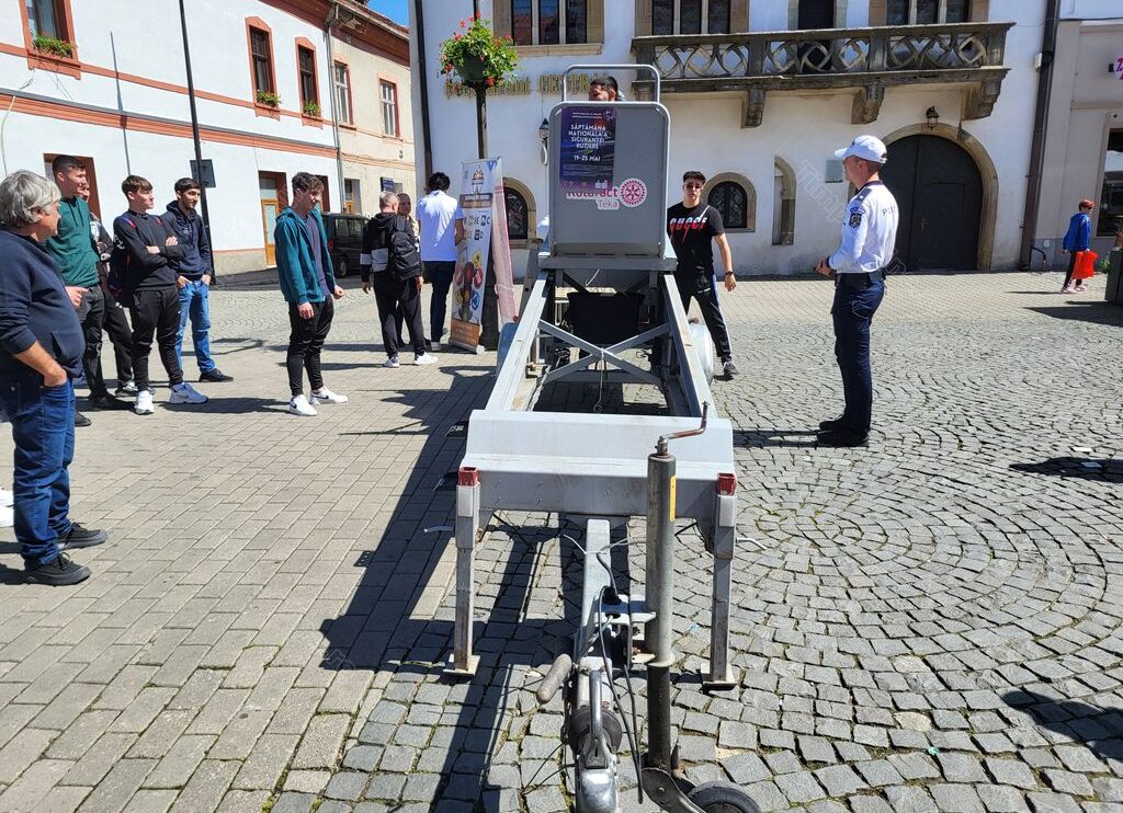 Polițiștii Serviciului Rutier Bistrița-Năsăud au organizat, miercuri, o acțiune în cadrul Săptămânii naționale a siguranței rutiere la care au adus și simulatorul de accidente.