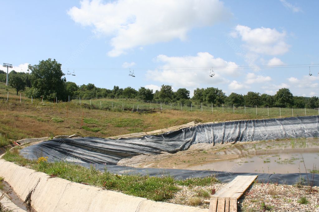 Practic, aşa cum puteţi vedea din imagini, s-a surpat pământul şi a alunecat sub materialul cu aspect de prelată, pus jur împrejurul lacului din care se ia iarna apă pentru a fi transformată în zăpadă artificială. Lacul cu pricina nu are aşadar malurile consolidate cu beton, doar acoperite cu un material negru, în condiţiile în care lacul a fost creat în mod artificial pe un deal. Se vede foarte bine din fotografii că tot acel material nu avea nicio rezistenţă, nu consolida malurile, ci le acoperea.