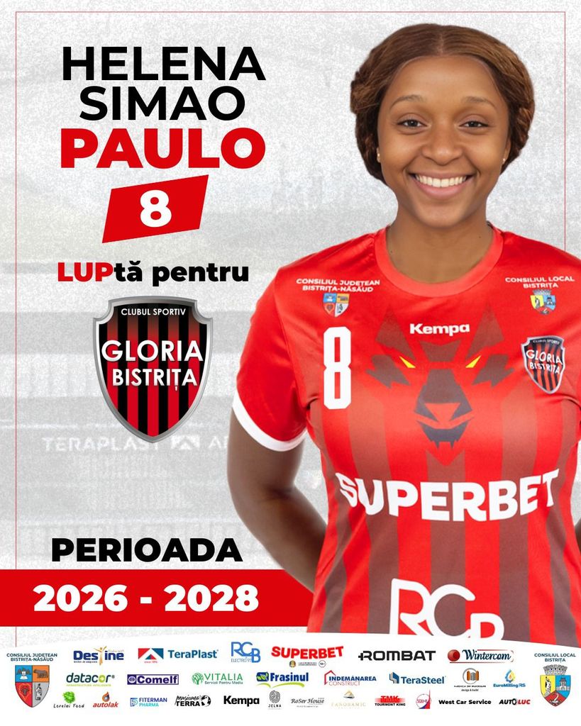 Gloria Bistrița o va avea în lot, din sezonul următor, pe Helena Simao Paulo (27 de ani), componentă a naționalei Angolei, cu experiență la cel mai înalt nivel, evoluând inclusiv la Jocurile Olimpice și Campionatul Mondial.