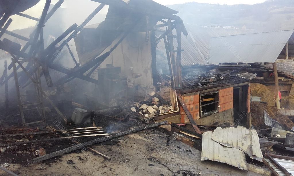 La Rusu de Sus, a ars o anexă gospodărească. Potrivit unor imagini postate de Ştiri din Beclean, construcţia ardea ca o torţă înainte să sosească pompierii.