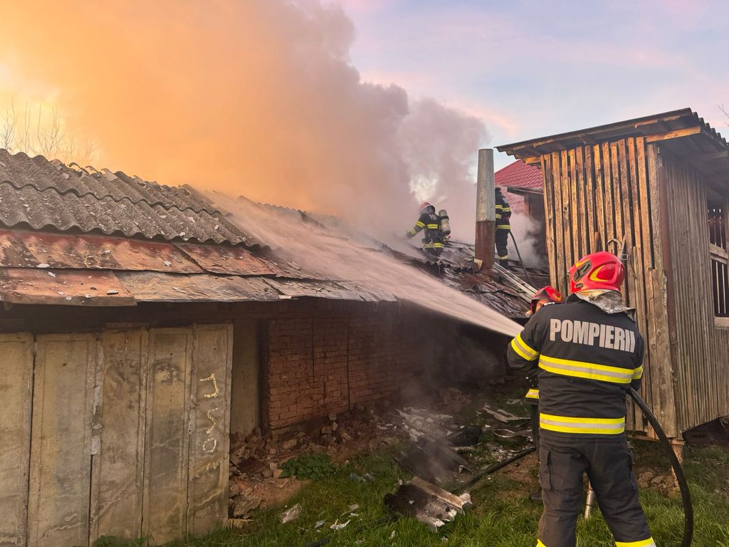 Incendiul s-a manifestat pe o suprafață de aproximativ 50 mp la acoperiș.