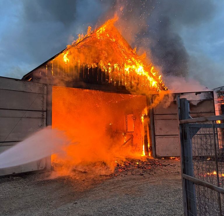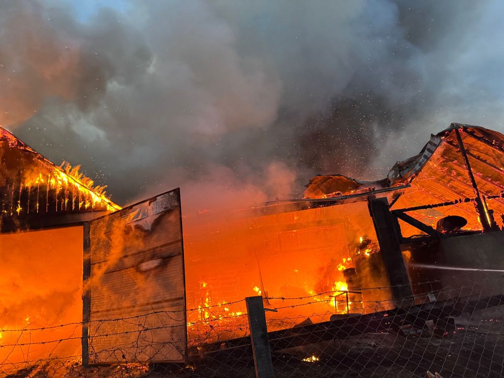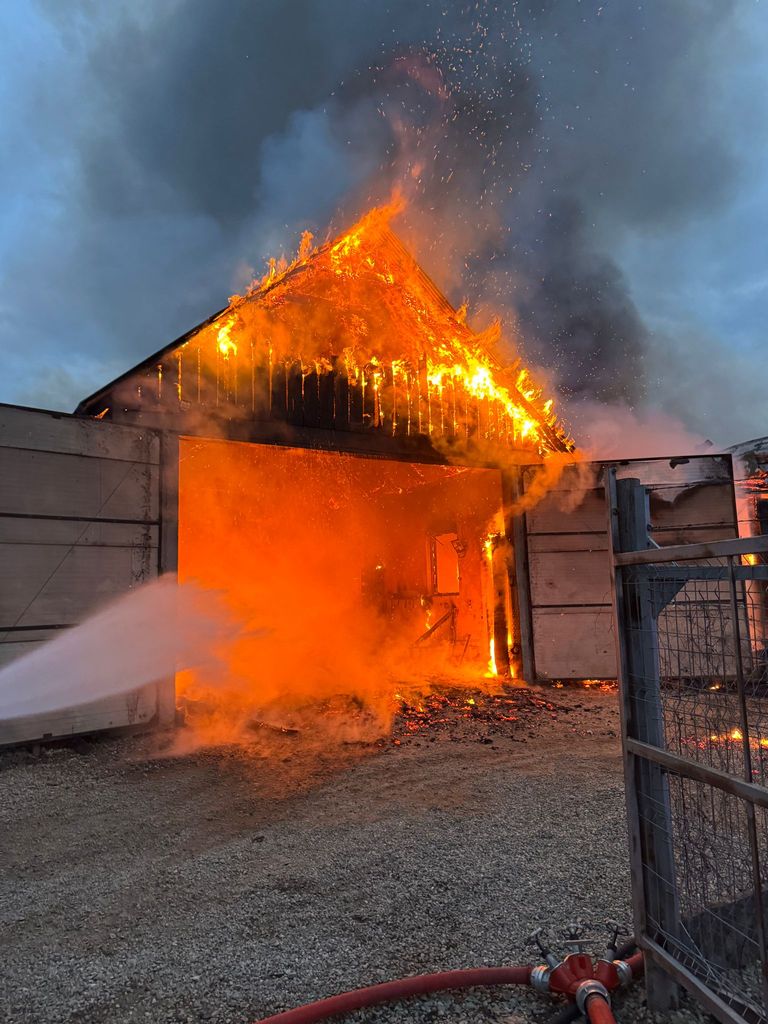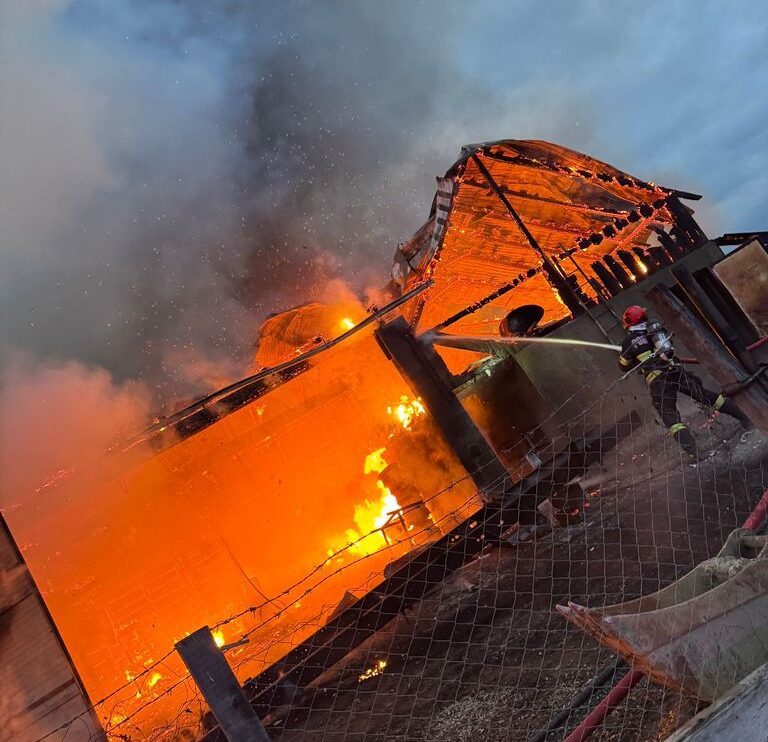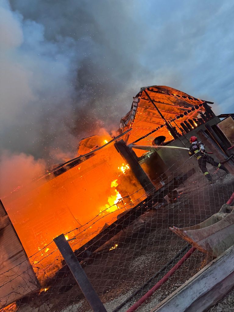Flăcările s-au manifestat violent, pe o suprafață de peste 400 de metri pătrați, afectând o hală și un grajd. Datorită intervenției rapide și coordonate, pompierii au reușit evacuarea animalelor din grajd în timp util, fiind evitate pierderi în acest sens.