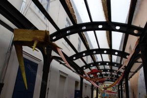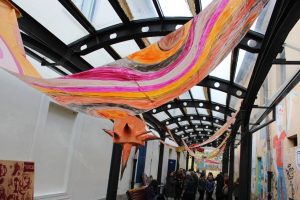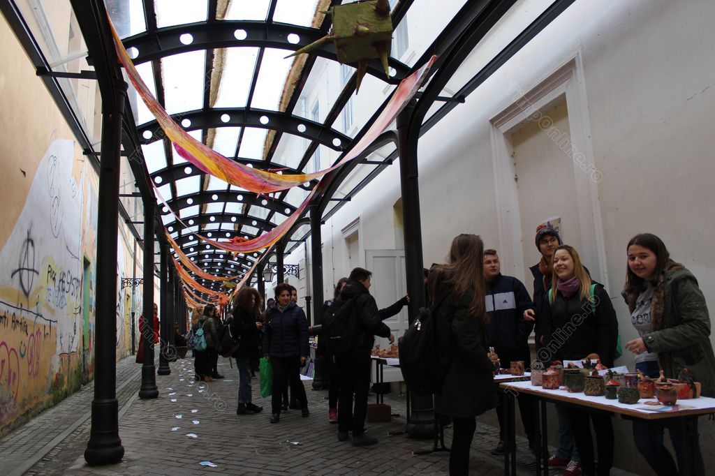 Loredana Chiş – profesor de design vestimentar: “Eu m-am implicat în picturile atârnate pe pasaj. Am pictat în culori calde ca să mai încălzim vremea de afară şi cred că ne-a reuşit ca să fim vizibili de zilele şcolii noastre. Papucii leagă şcoala noastră de pasajul artelor. La intrarea şi la ieşirea de pe pasaj sunt două bannere sub forma unei porţi. Oamenii se opresc, fac poze. E de impact”.