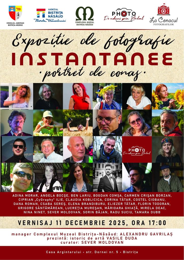 Sunteți așteptați la o nouă întȃlnire cu fotografia în Bistriƫa, la Casa Argintarului, în data 11 decembrie 2025, la ora 17.00.