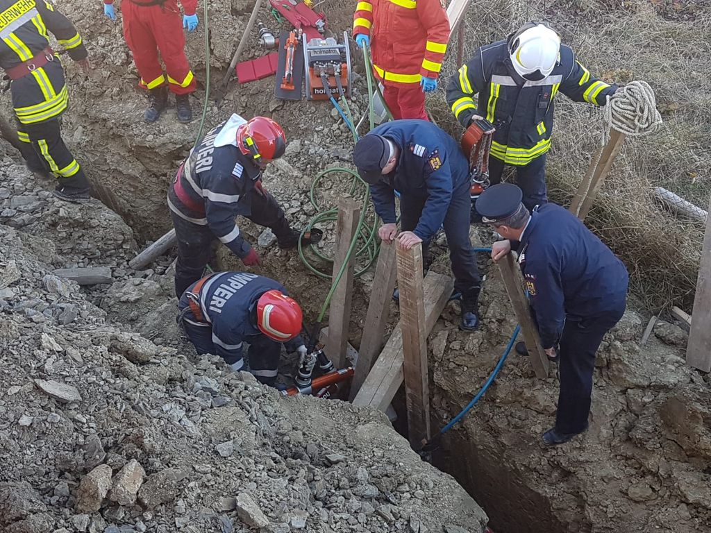 ”Intervenția a fost una contratimp, ținând cont de presiunea exercitată de pământ asupra corpului victimei, dar și de temperatura scăzută de afară. După ce au fost stabilizate malurile șanțului cu accesoriile hidraulice, a fost îndepărtat cu grijă pământul din jurul victimei. Un aport enorm l-a avut fiul victimei, care a sprijinit intervenția din momentul 0 și până la final, lucrând în echipă cu echipajele de intervenție alocate la locul solictării. Victima a fost extrasă după aproximativ 70-80 de minute și predată echipajului medical, în vederea stabilizării și transportului către UPU-SMURD Bistrița”, informează ISU Bistrița-Năsăud.