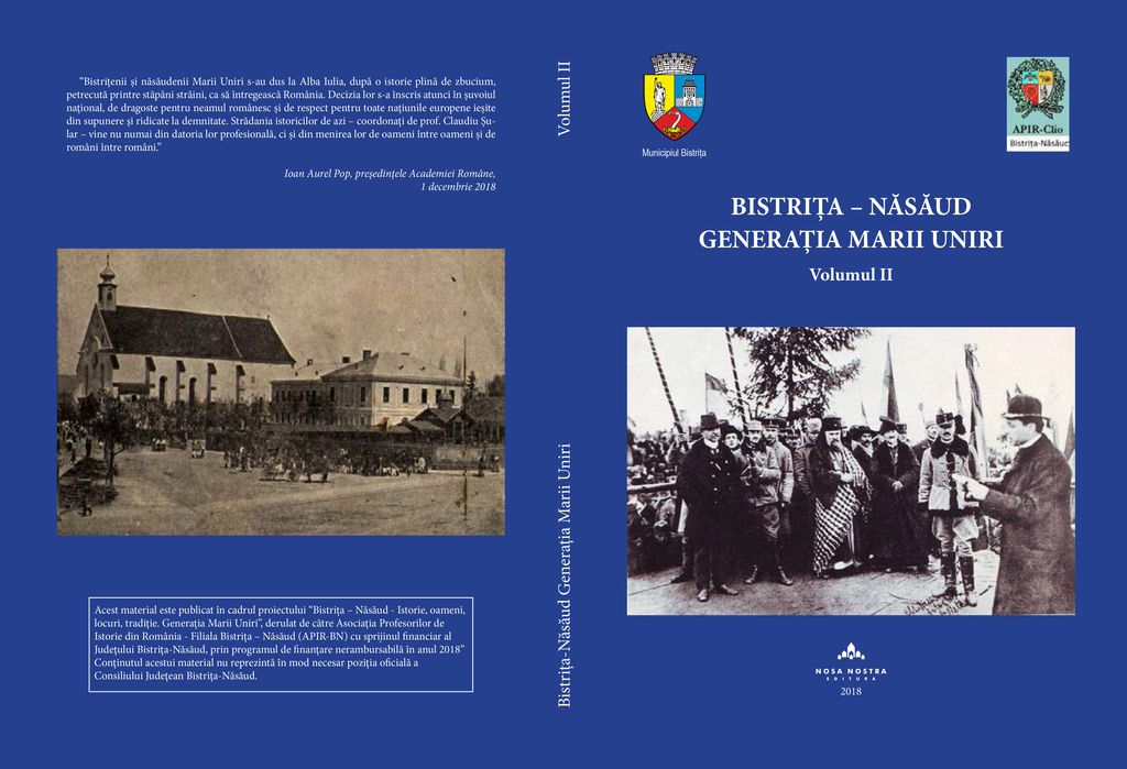 Asociația Profesorilor de Istorie din România-filiala Bistrița-Năsăud (APIR BN) organizează marți 18 decembrie, ora 16.00, în sala de consiliu a Palatului Administrativ, lansarea celui de-al doilea volum al cărții “Bistrița-Năsăud. Generația Marii Uniri”.