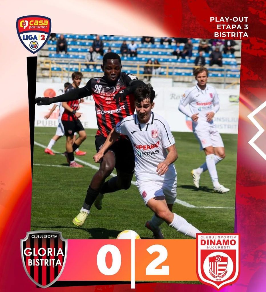 Gloria Bistrița a pierdut pe teren propriu cu CS Dinamo București în etapa a 3-a din play-out-ul Ligii 2 la fotbal, Grupa A.